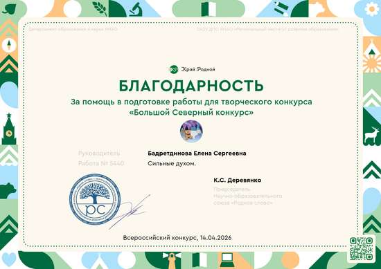 Сильные Духом- так говорят о хантах. И не зря. Суровый климат, тяжелый труд -не для слабых духом. Ханты пытаются хранить свою идентичность и уникальность. Традиционными занятиями хантов считается речное рыболовство, охота, оленеводство, собирательство. Хантыйки занимаются шитьем одежды и обуви. Для этого используют олений мех, замшу, цветное сукно. Изделия украшают бисером и традиционными орнаментами: «дом», «солнце», «оленьи рога», «шишка» и другие. Медведь - особое животное для хантов. Добыть медведя всегда считалось большой удачей. При подготовке к конкурсу маленькие жители Югорского края узнали много нового и интересного о обычаях и быте северных народов. Дети смотрели презентации, играли в традиционные игры хантов, слушали загадки народа ханты, познакомились с уникальными орнаментами. Для подготовки работы также были привлечены родители, которые изготовили куклы-ханты и лабаз.