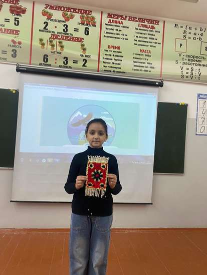 Наша ученица 2 "г" класса принимает участие в конкурсе "Наш орлиный Дагестан" в номинации "Внимательно вглядитесь в мой узор". Ковры на кавказе популярны не просто так. Раньше они служили сугубо практической цели- сохранять тепло в жилище. Ковры,которые отражают их статус и являются тем предметом, который можно передавать по наследству. Их срок службы 300 лет. 1. Сначала по свежевытканному изделию пускали табун лошадей. 2. Затем его на несколько дней оставляли под палящим солнцем. 3. И наконец погружали в воду и оставляли там еще на несколько дней. В настоящее время ковры продолжают делать вручную.