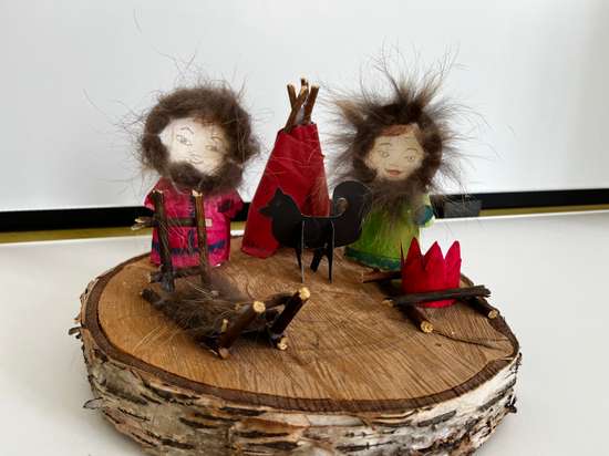 Жилище (Чум): Сконструировано из веточек, служащих каркасом, и обтянуто плотной красной бумагой, символизирующей традиционное покрытие.