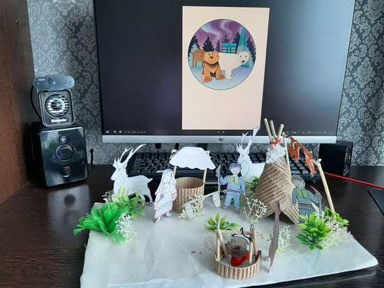 здесь мы построили наш Чум из: шпажки,картон гафре, пенопласт.