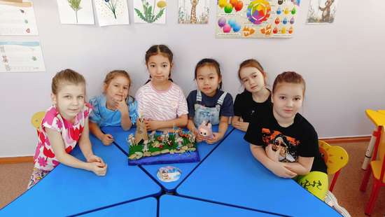 Работа знакомит детей с особенностями жизни коренного кочевого народа Севера -эвенков - в летний период. Проект позволяет погрузиться в уникальную культуру и повседневные занятия людей, гармонично сосуществующих с суровой природой. Замысел композиции - создать наглядный макет, который наглядно отразит летние занятия и быт эвенков. Через творчество участники узнают, как устроена жизнь в тайге и тундре, какие традиции и привычки передаются из поколения в поколение. Процесс создания: Педагог помог сделать макет чума. Дети под руководством педагога поэтапно воплощают замысел: 1. Подготавливают основу, размечают расположение объектов. 2. Лепят из пластилина основные фигуры: людей, оленя, рыбу, детали чума. 3. Вырезают ножницами элементы из бумаги. 4. Раскрашивают и декорируют детали, добиваясь реалистичного или стилизованного вида. 5. Собирают композицию, закрепляя элементы на основе. 6. Дополняют ландшафт мелкими деталями