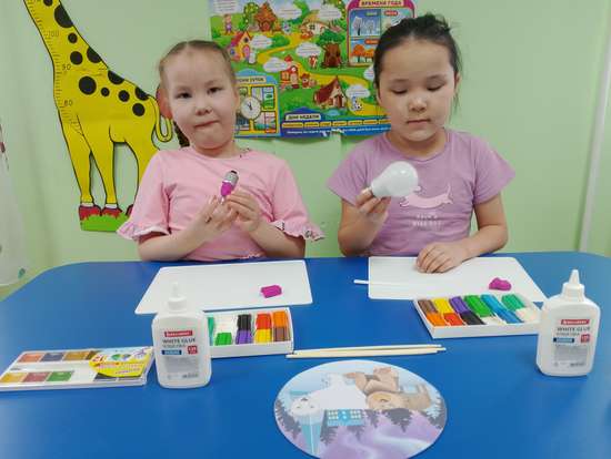 Материалы: Вата, лампочки, клей ПВА, пластилин, краски, фетр.