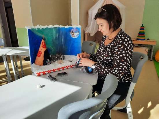 Такое название отражает сюжет композиции: хантыйская семья на традиционном стойбище, где папа ловит рыбу в загоне, олени рядом, а жена ждёт у юрты своего рыбака. Эта поделка выполнена в технике аппликации, лепки из природных материалов, веток для изготовления загона для оленей и хорошо подойдёт для знакомства детей с бытом и традициями народов Севера.