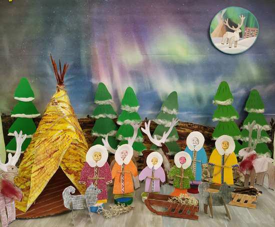 Ребята 4 "В" класса выполнили несколько проектов по учебному пособию "Мой Ямал. Край, в котором я живу", использовав выкройки из рабочей тетради "Мой Ямал. Знаю, умею, учусь", а потом соединили в единую панораму. При выполнении работы использовали различные материалы и инструменты, частично, в панораму были добавлены дополнительные материалы и элементы.