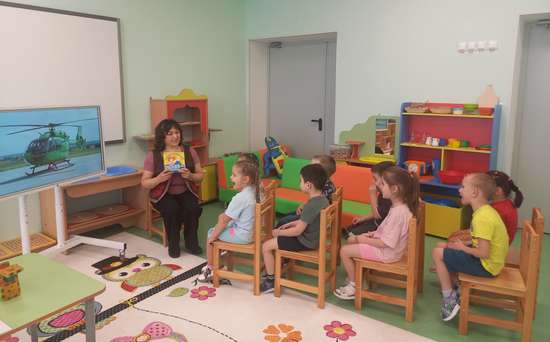 Данное занятие проводилось в старшей группе детского сада в форме игрового путешествия.Групповое пространство трансформировалось под разные этапы — «салон вертолета» (стулья с карточками-схемами), зона для строительства трубопровода (столы для командной работы), импровизированное «стойбище» (свободное пространство для постройки чума), зона с рамками и палочками Кюизенера (столы на двоих).Возраст детей 5-6 лет, 8 детей.Дети активно использовали палочки Кюизенера, магнитный конструктор, для построения чума прототипы палочек Кюизенера. «Полет» над тайгой вызвал у детей яркий положительный эмоциональный отклик.