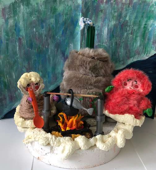 Детям интересна жизнь народов Крайнего Севера», особенно быт, питание и устройство жилища. Для знакомства с культурой и бытом народов Севера, смастерили с детьми макет с атрибутами жизни северных народов.,Детям был интересен процесс работы над макетом, изображающий приготовление ухи в котелке около юрты, благодаря сочетанию познавательного, творческого и игрового аспектов. Уха у северных народов — не просто блюдо, а часть северного характера: сдержанного, честного, насыщенного. В ней есть всё — аромат холодной воды, мягкость огня и сила Севера. Уха, приготовленная на костре на улице, — историческая традиция северных народов, связанная с тем, что рыба была главным продуктом и символом жизни. Считается, если уха получилась ароматной, значит, дом стоит на хорошем месте — рядом с «живой водой» Работая над макетом, дети узнали , что национальная одежда народов севера- это малица — длинная одежда из оленьих шкур мехом внутрь с капюшоном. Когда очень холодно, поверх малицы надевают совик. Это шуба с мехом наружу. Дети, при создании макета использовали различные материалы.