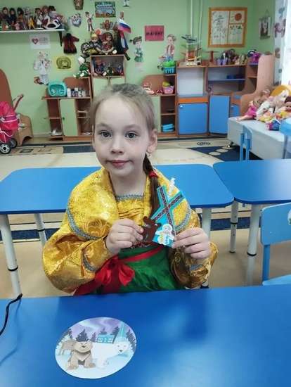 Приуральский район – крупнейшая территория ЯНАО, где преобладает оленеводство, тесно связанное с постоянной сменой пастбищ и кочевым образом жизни. Жилище кочевников Севера называется чум. Чум — традиционное жилище жителей Ямала. Изготовим поделку «Тепло с Ямала». Сначала на фетре обводим чум, коми-девочку, оленя и вырезаем. Берем два конца тесьмы и приклеиваем у верхнего края чума. Далее проклеиваем по краю фетра, не выходя за контур чума, берем второй чум и кладём его сверху и склеиваем их вместе тем самым закрывая тесьму. Берем полоски тесьмы «Северный орнамент» и приклеиваем по бокам чума. Берём заготовку оленя приклеиваем глаз, а потом приклеиваем оленя на чум с левой стороны. Далее берём заготовку коми – девочки приклеиваем готовое лицо, берём фломастеры и раскрашиваем малицу коми – орнаментом, далее приклеиваем коми-девочку на чум. Поделка "Тепло с Ямала" готова!
