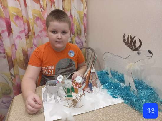 Участвуя в конкурсе хотели показать семью коренных народов Севера именно один из их укладов жизни: уважение к старшим и семье. Ведь у народов Севера в одном чуме живет несколько поколений семьи. Они принимают решения всегда вместе - сообща, учатся слушать старших и уважать младших. Интересна тема потому, что есть в семье 3 поколения, и важно учиться слышать и слушать друг друга. Ребёнок делал всю подделку самостоятельно. Взрослый подготовил материалы и распечатал шаблоны.