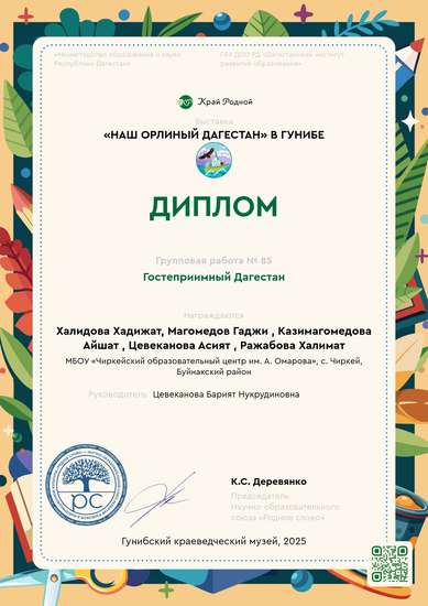 I место на конкурсе Наш орлиный ДагестанУчастник выставки «Наш орлиный Дагестан» в Гунибе