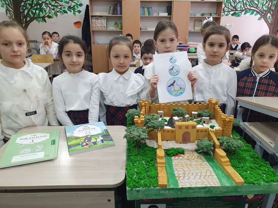 Всем здравствуйте, мы 1-1 класс любим изучать историю родного края - Дагестана ,поэтому мы выбрали Дербентскую крепость. Материалы нашлись легко ,подручных средства в доме :за основу взяли пенопласт и гипс. Стены крепости выполнили из пенопласта, вырезать было сложно ,но мы справились ,для лучшей фиксации использовали клей -пистолет,стены покрасили гуашью, сложным было собирать деревья (проволока и вата ) ,покрасили гуашью. Мы очень старались ,работа сделана с любовью к своей Родине.